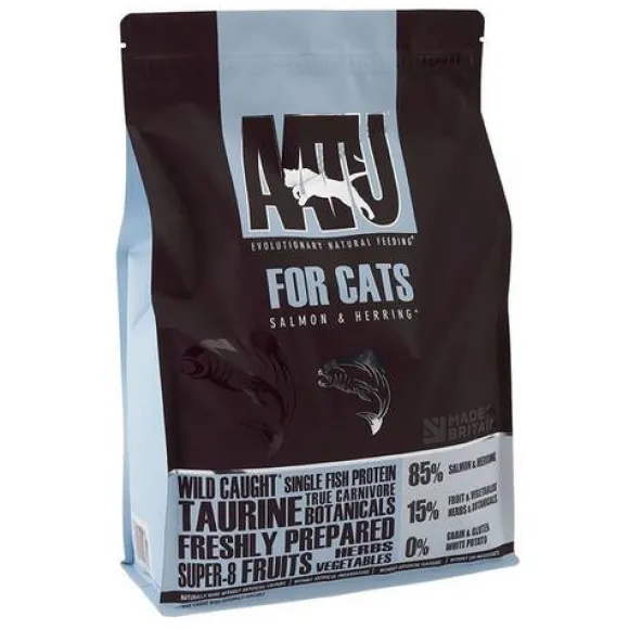 AATU for Cats Salmon & Herring is a tasty, natural food for adult cats, handmade in the UK without using any GMO ingredients. It’s also free from artificial colours, flavours, fillers and preservatives, so you know exactly what your cat is eating—there are no mystery numbers in this ingredient list!