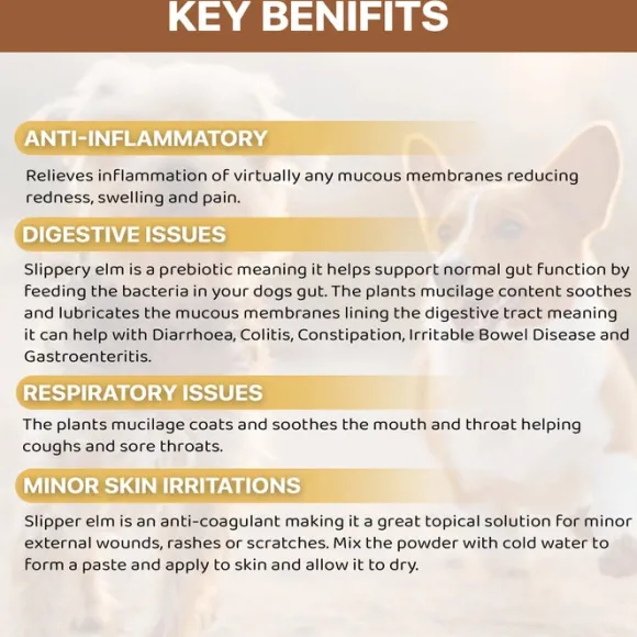 Slippery Elm Bark really is a wonder supplement that will improve your pooches overall health.