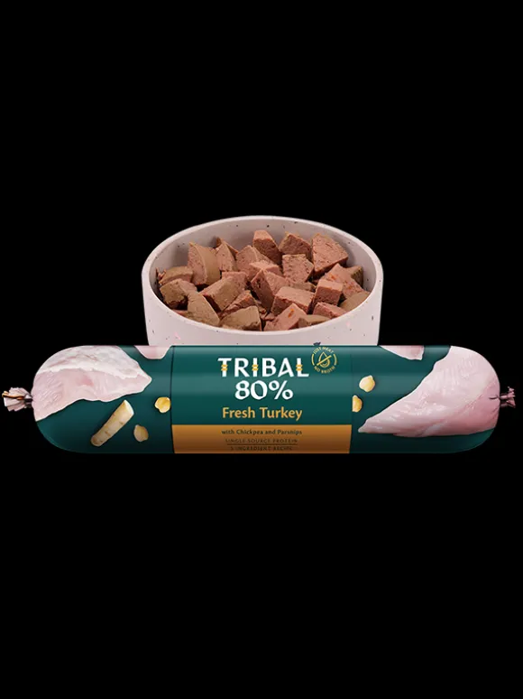This top quality Tribal 80% Turkey Gourmet Sausage – Turkey isn’t just a mouth-wateringly tasty meal for your dog, it’s been carefully developed to be in tune with their natural feeding and digestion processes. It’s both tempting and naturally healthy, all at the same time! Tribal products are made in the UK and the Netherlands using responsibly raised meats and sustainably sourced fish.