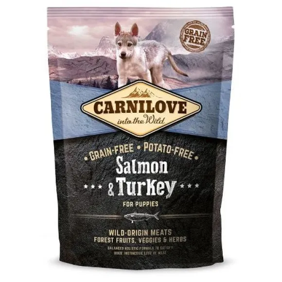 High-quality nutrition rich in essential amino acids, vitamins and minerals is critical for healthy growth in puppies. Salmon is an excellent source of highly digestible proteins as well as omega-3 unsaturated fatty acids, which have a positive impact on mental development, the cardiovascular system, and metabolism (they reduce blood sugar levels). It also positively affects the quality and appearance of hair and skin. Turkey is rich in digestible proteins and has high levels of trace elements, such as zinc, and also contains vita – mins B3 and B6, which are critical for proper brain function, good muscle tone, and healthy growth.
