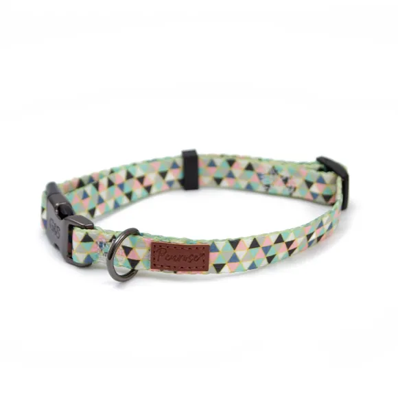 The Great & Small Geometric Triangles Collar is made with quality nylon webbing. Weatherproof, strong, soft and durable this adjustable collar is comfortable for your dog.