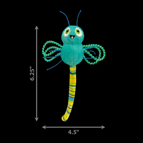KONG Flingaroo Dragonfly launches cats into flights of pounce-and-capture fun, with elastic wings that fuel long-distance flings for lots of healthy exercise. The long, lightweight body crinkles to spark natural hunting instincts and tempting legs and antennae invite batting and dragging. KONG Premium North American Catnip inside prolongs play.