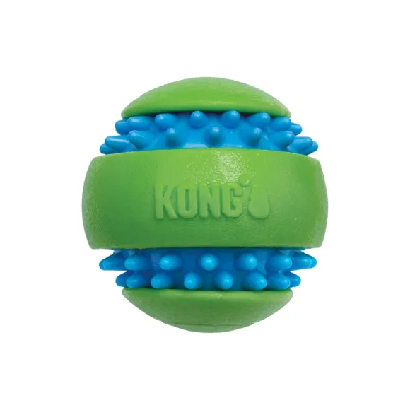 KONG Goomz ball’s enticing raised nubs massage teeth and gums while rewarding appropriate chewing behavior. Mixed textures and a durable material encourage on-going fun while satisfying natural instincts. The squeaker continues to extend playtime for indoor and outdoor sessions of interactive engagement.