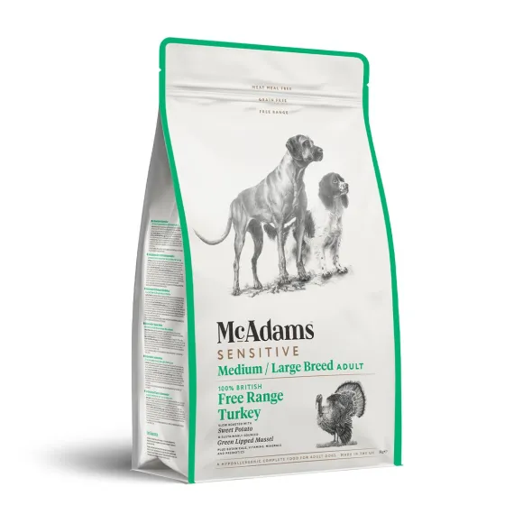A complete and balanced diet made with more fresh meat than any other dry dog food on the market. McAdams Sensitive provides the ultimate meal for medium and large breeds with allergies and sensitivities.