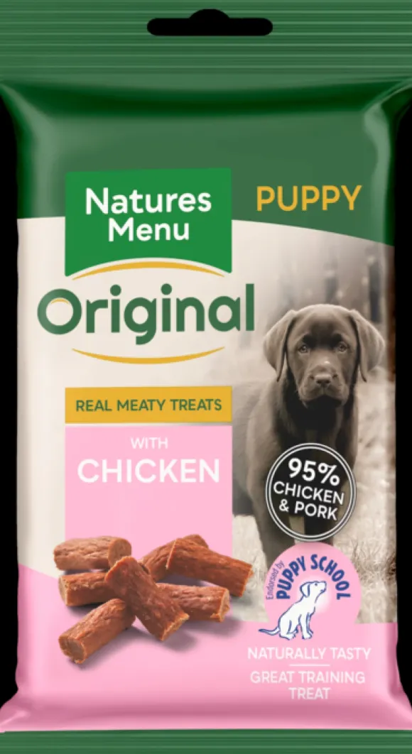The ultimate real meaty training treat. Made with 95% real chicken and pork. An irresistible reward for puppies. Made without grain. Pack size 60g.