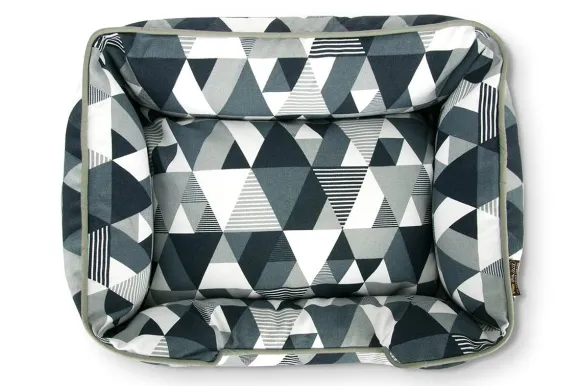 P.L.A.Y.’s Mosaic Tuxedo Lounge Bed is made from 100% natural unique cotton fabric keeping your pup lounging in style all night long.